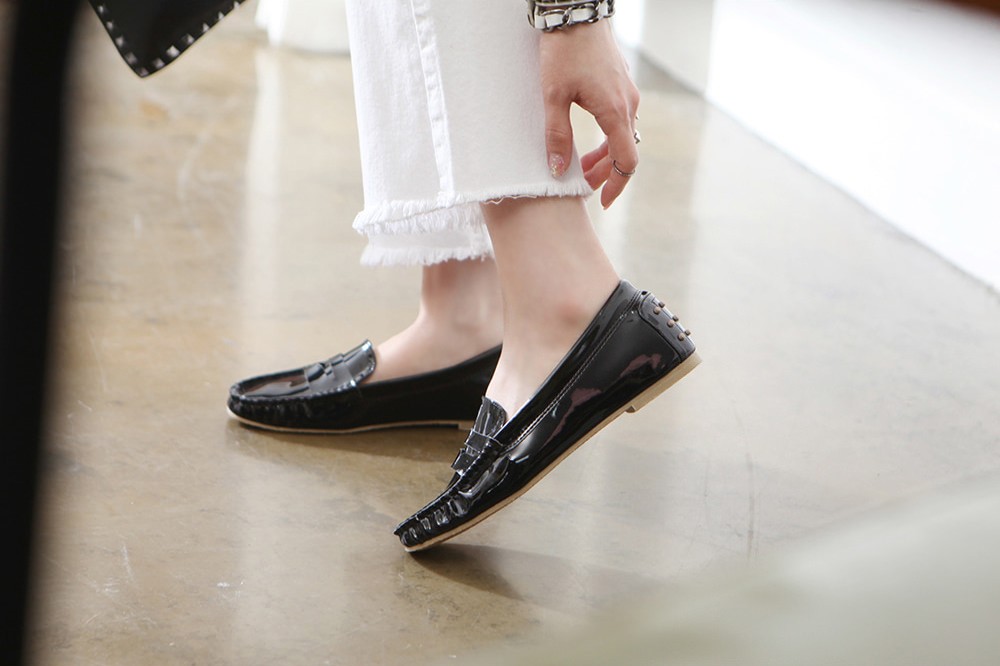 メンズライクアイテムの定番ローファーは「オックスフォード」、「オペラシューズ」を含めた3大おじ靴のひとつ。学生やキッズの頃に誰もが履いた「haruta(ハルタ)」や「リーガル」などが有名でメンズ靴としても人気ですが最近ではマニッシュスタイルの流行からレディース靴としても定着。高級感のあるエナメル素材やタッセル付きのヒールが高めのブーティなローファー、女性らしさをプラスした厚底ローファー、カラーは定番のブラックから爽やかなホワイトなど種類もカラーも多数。ぺたんこパンプスの用に気楽に履くのも◎流行にとらわれないローファーは一足は持っていたいレディースシューズ◎ペタンコの流行は継続の中、ローファーは今季の注目マストアイテム。革靴メンズファッションでかっこかわいいスタイルを演出。
