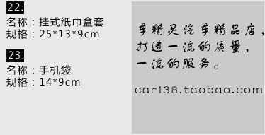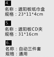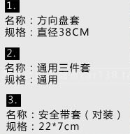 [products]: steering wheel cover 1, CD visor 1, sun visor tissue box cover 1, the safety belt 2, handbrake cover 1, the gear set 1, rearview mirror set 1