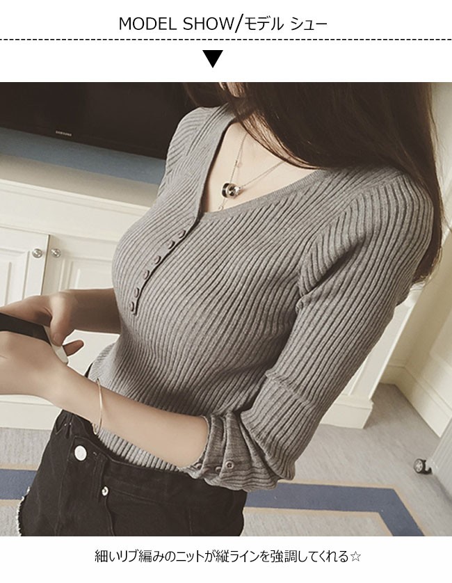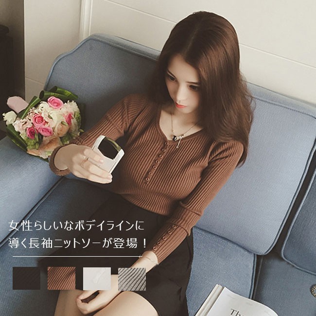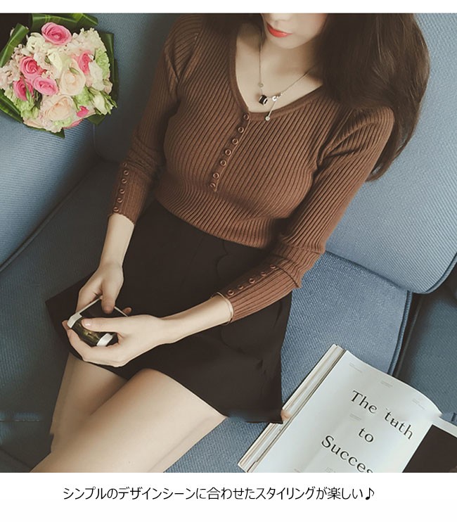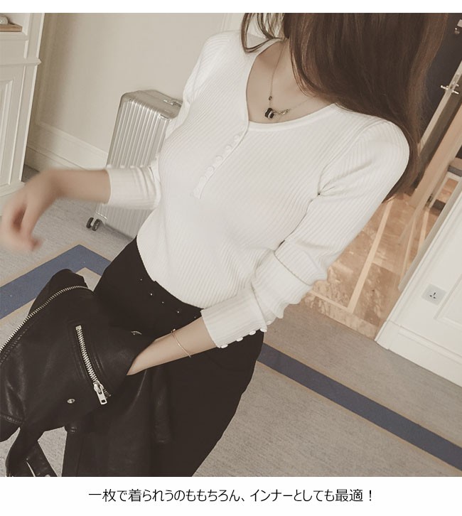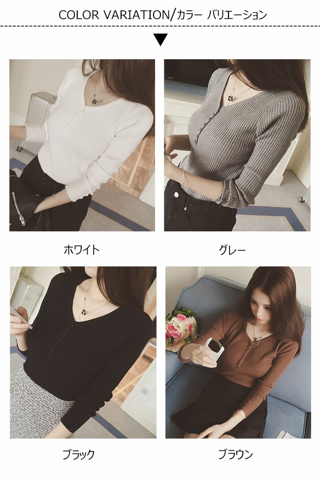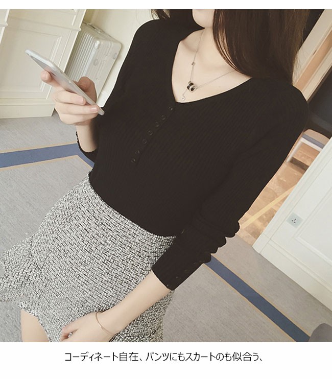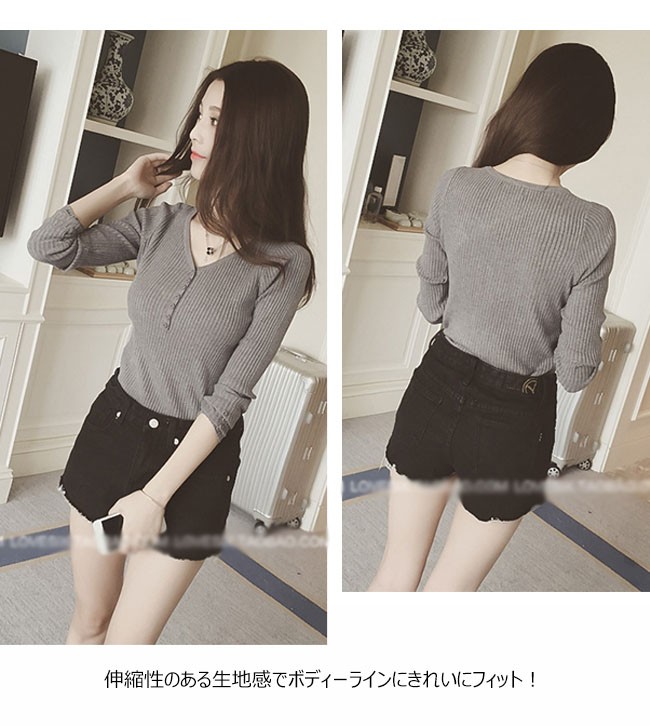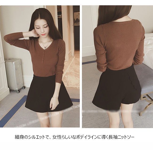| 商品名 | ニットセーター ニットブラウス インナーニット レディース 無地 ストレッチ Vネック リブ編み ショート丈 可愛い 薄手 2017秋新作 |