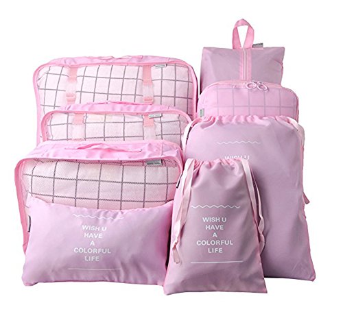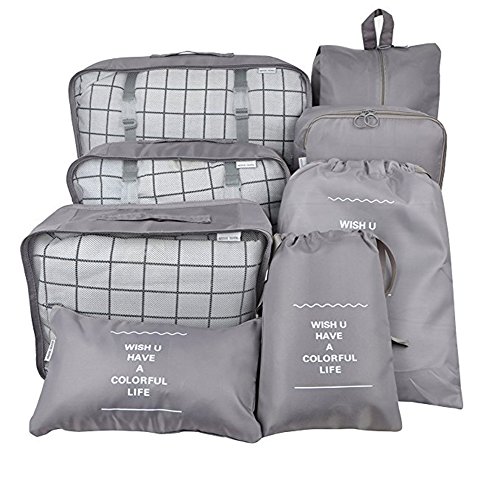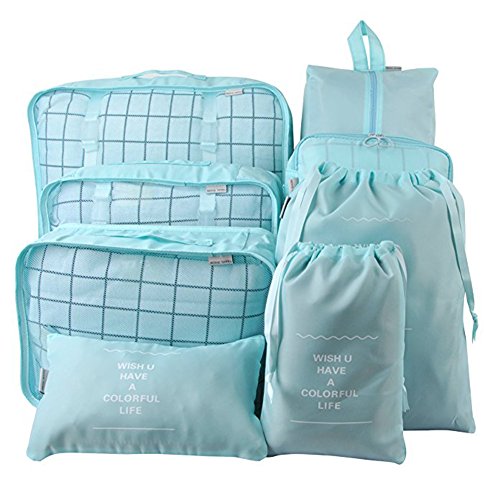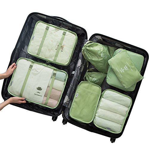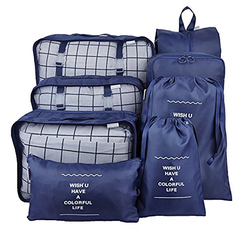 | Belsmi 8 Set Packing Cubes - Waterproof Mesh Compression Travel Luggage Packing Organizer With ... |