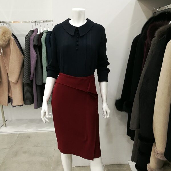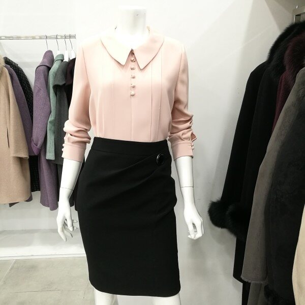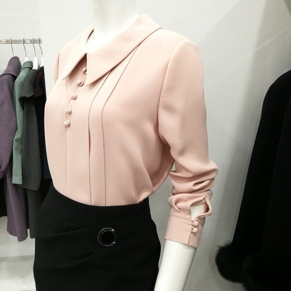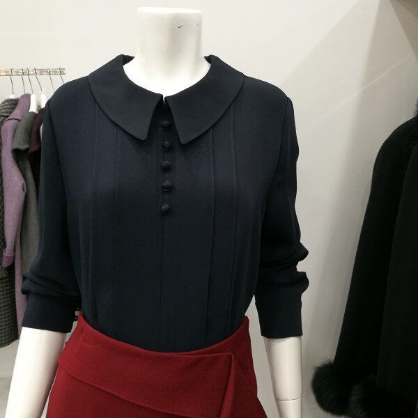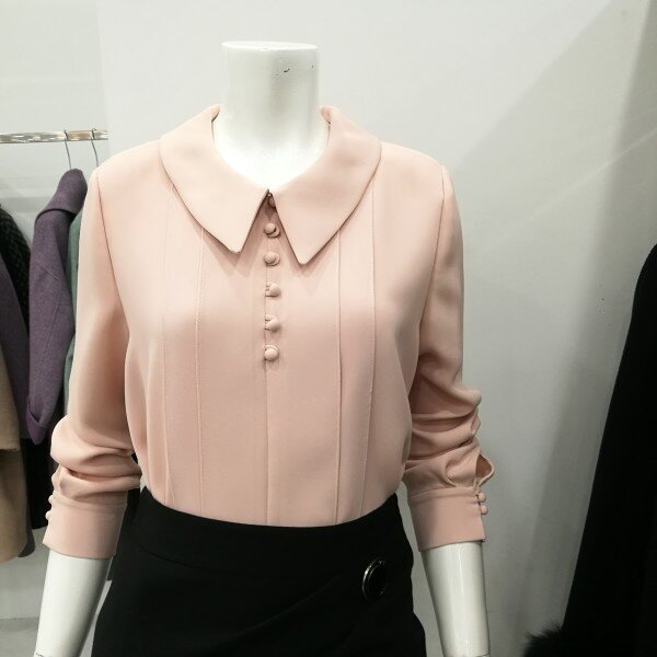 카라가 여성스러우며 앞에 고리단추 장식이 아기자기하고 아주 세련되고 고급스러운 디자인이다.