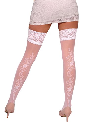 -. Feature : Exklusive Hochzeits-Sammlung / eiß atemberaubende transparent gsterte Halterlose Strümpfe P.R.Incess 06 mit breiten Spitze 9 cm und Doppelsilikonband. / Verstärkte Spitze für Eleganz. / Dank spezieller Fasern sorgen sie für Komfort Nutzung und sie sind hautfreundlich, Beine kann natürlich atmen.