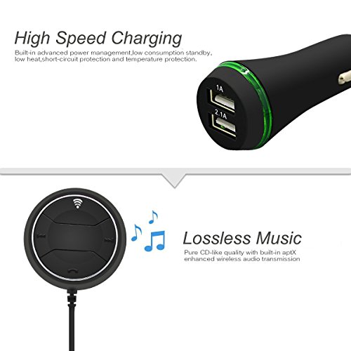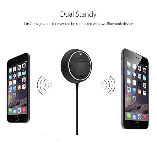 ┏ONE IN TWO-Supports pairing two smarts devices at once. Fully Backward Compatible. Full-speed transmission and low power consumption. Up to 33 ft range. You will never miss a call again with this Bluetooth car adapter!