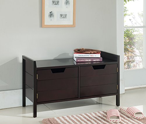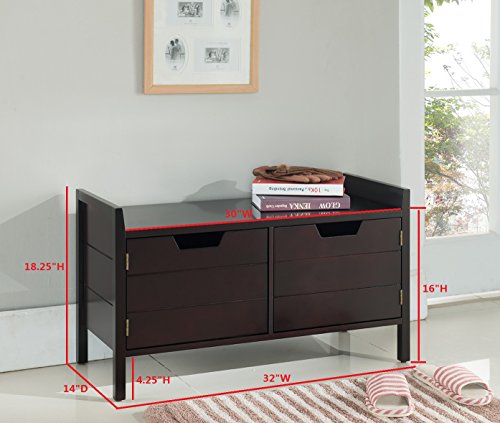 - Feature : Kings Brand Furniture Espresso Finish Wood Storage Bench With Doors. / Suitable for your bedroom, living room or entryway area, the bench serves dual functions as a seating bench and a shoe cabinet. / Dimensions: 32"W x 14"D x 18.25"H. / Simple assembly required.