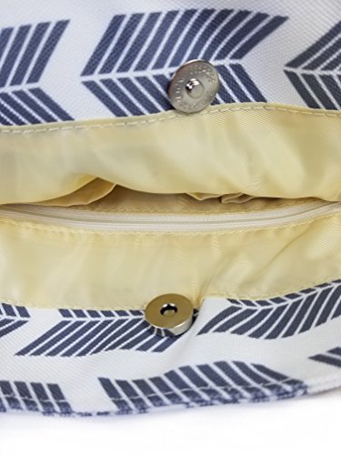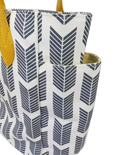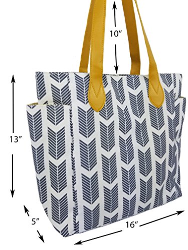 Product Description Arrow Tote Bag. This beautiful arrow themed tote/ bag is perfect for fall and winter! Easily gathers all your essentials and your favorite pair of sunglasses for a day out! One zipper compartment with top button closure, and two interior slip pockets. Two side pockets allow for a water bottle.This arrow themed tote bag is the perfect way to make a fashion statement. Also use as a weekender bag / travel bag, or a diaper bag. 0