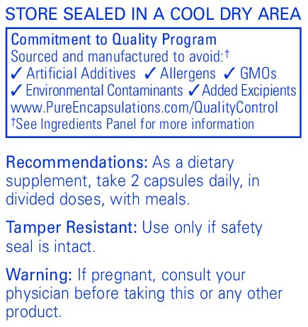 PURE INGREDIENTS: Pure Encapsulations® manufactures a line of hypoallergenic, research-based dietary supplements. Products are meticulously formulated using pure ingredients designed to deliver predictable results for the benefit of all patients, even the most sensitive.*