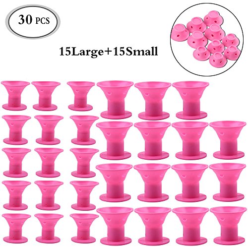 - Soft Silicone Hair Curlers: The material is high quality medical-grade soft silicone, hypoallergenic, odorless and non-slip. Package: 15pcs large hair curlers and 15pcs small hair curlers, color: pink as shown in the pics.