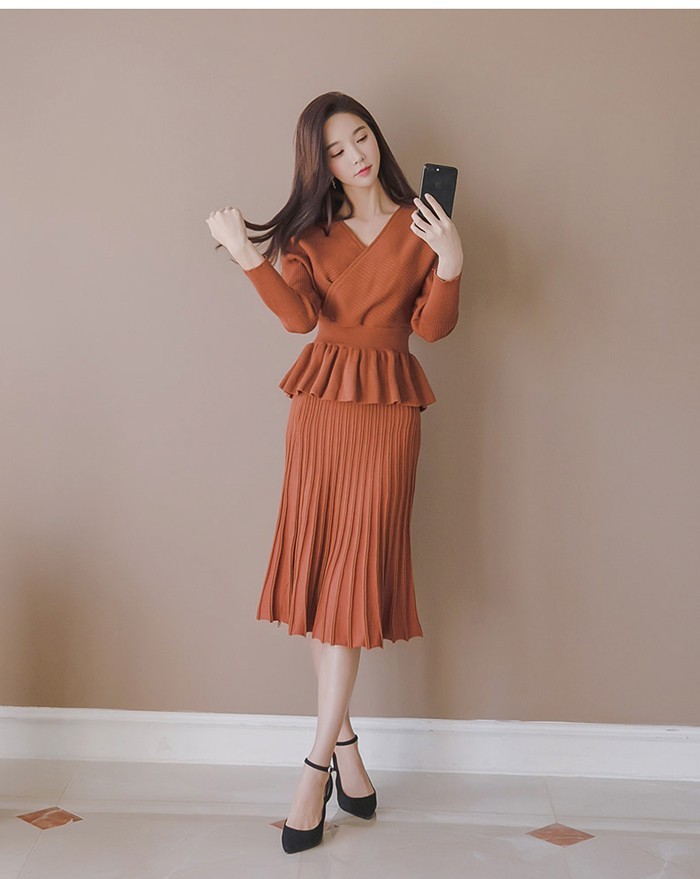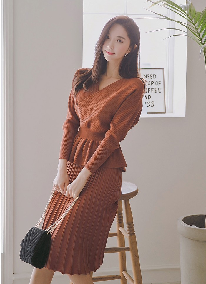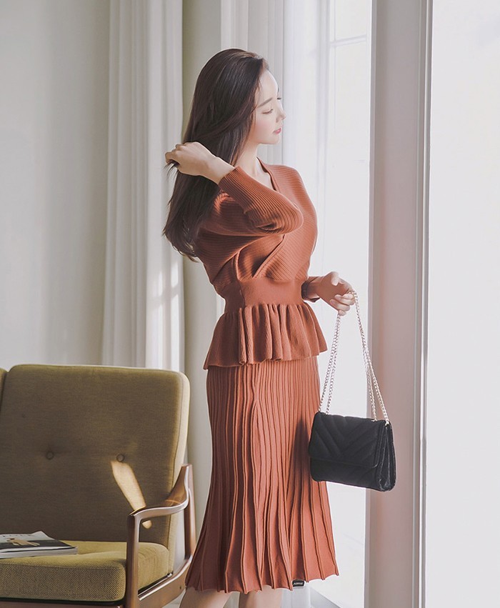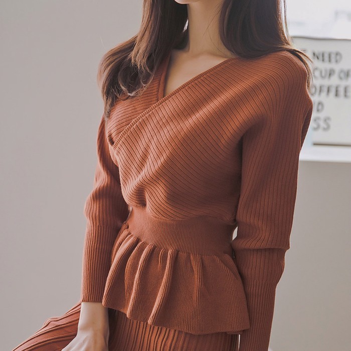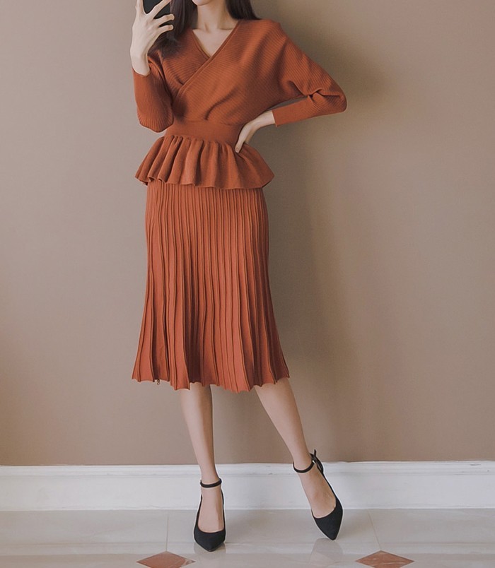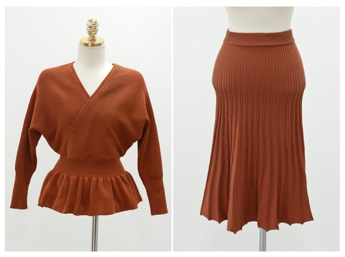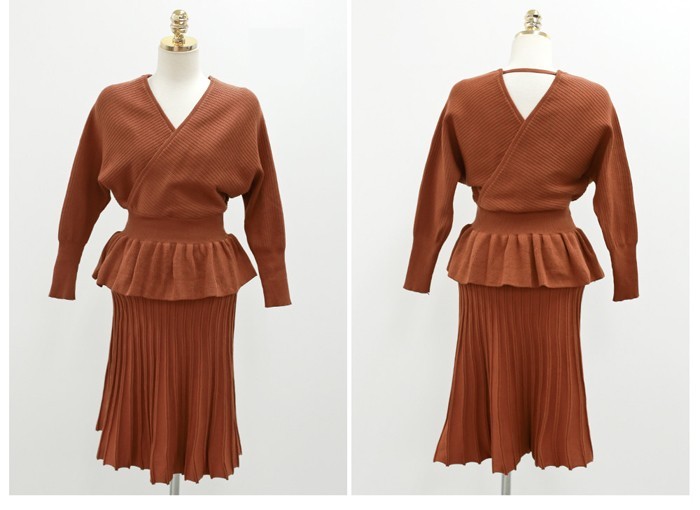 商品名:セットアップ カシュクール ニット 膝丈 きれいめ