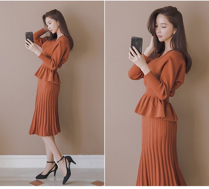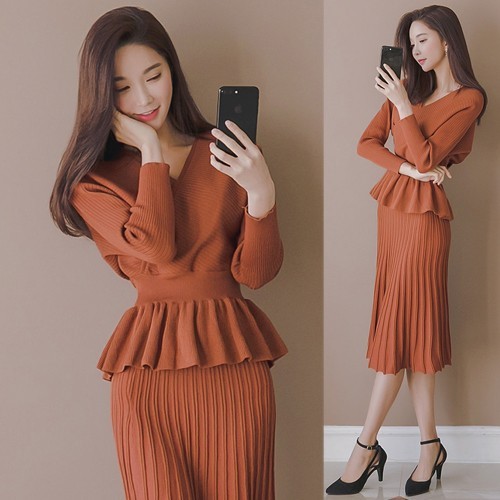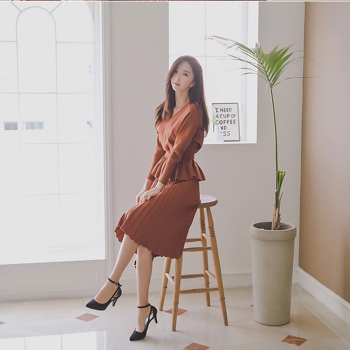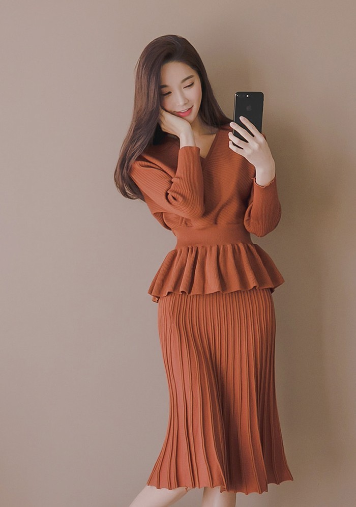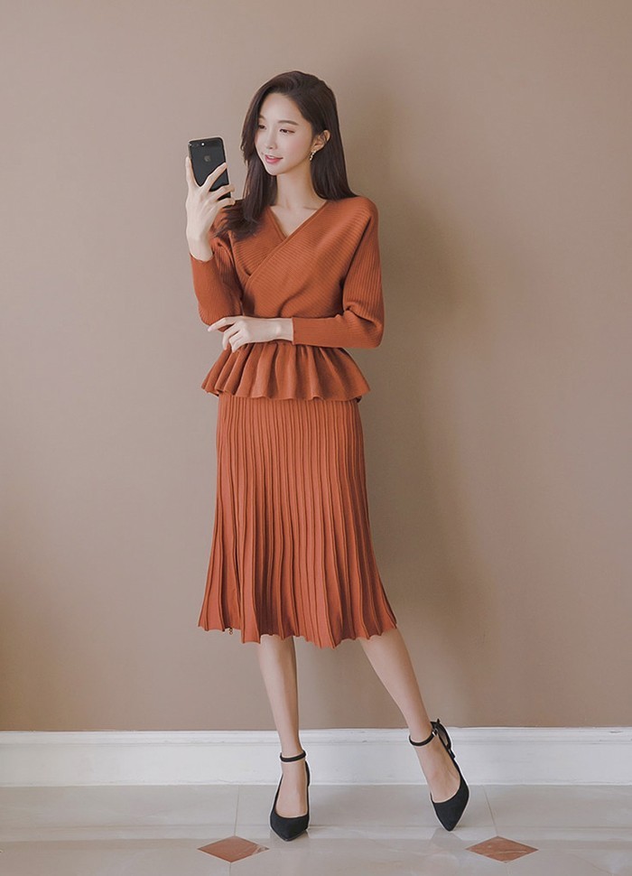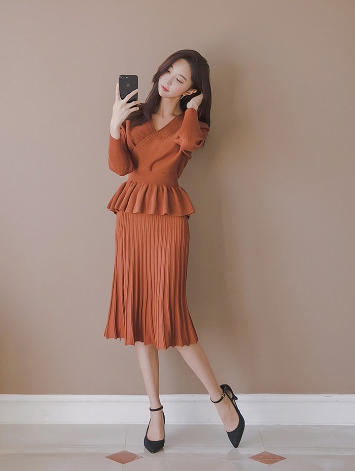 商品名:セットアップ カシュクール ニット 膝丈 きれいめ