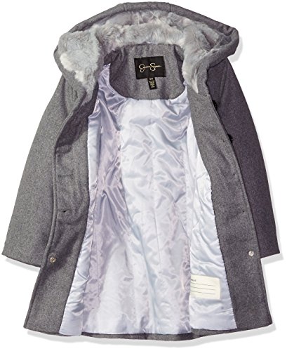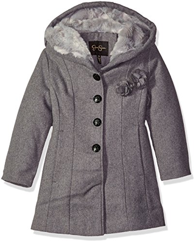 Jessica Simpson Little Girls' Fit and Flare Faux Wool Coat with Rosettes, Grey, 4