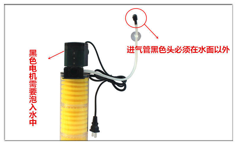 注意事项:机器使用时必须整个泡进水里面,否则容易烧坏过滤器。