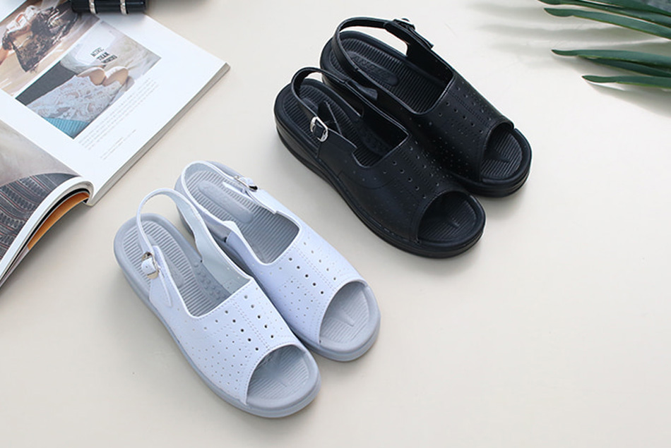 발등을 감싸주는 넓은 스트랩에 펀칭으로 되어 있어 더운 여름철 시원한 통기성과