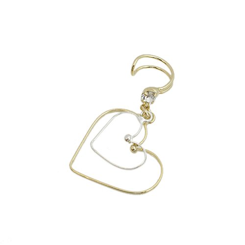 -. Title : 片耳イヤーカフ、ダブルオープンハート、ピアスホールなくてOK、フリンジ、ラインストーン、イヤリング、シンプル、ガーリーモチーフ
