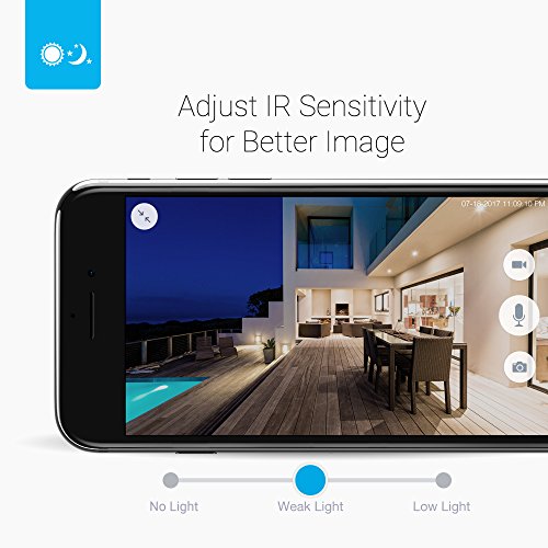 1080p Full HD Non-stop Monitoring - Get a crystal clear full-HD picture of your home, from anywhere at any time, and see up to 65ft away in the dark. Night-vision settings allow you to turn on, off, or adjust the sensitivity of your night-vision so that you can obtain the perfect picture of your home, day or night.