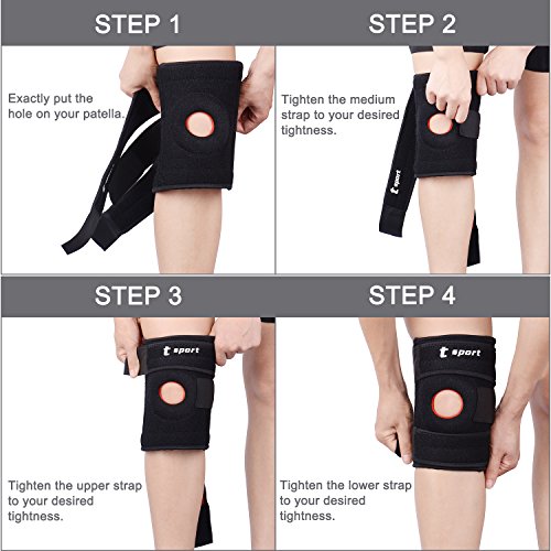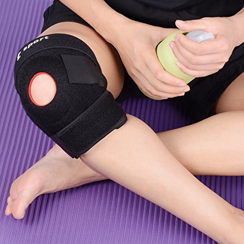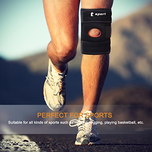 Toplus Knee Support, Open-Patella Stabilizer Knee Brace with Adjustable Strapping & Extra-Thick Breathable Neoprene Sleeve for Skating, Biking, Volleyball, Basketball, and Other Sports, Black