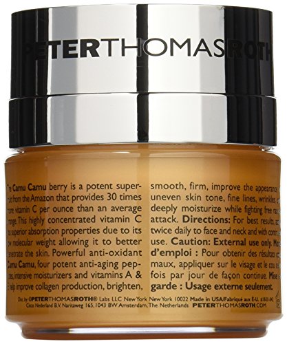 -. Binding : Health and Beauty -. Brand : Peter Thomas Roth -. Color : no color -. Department : womens -. EAN : 0670367010426 -. Feature : Camu camu power C-X 30 vitamin C brightening moisturizer is a revolutionary anti-aging hydrator / Improves collagen production, brightens, firms, smooth, and tones the skin / Improves collagen production -. IsAdultProduct : 0 -. Label : Peter Thomas Roth -. LegalDisclaimer : With over 1 million orders filled successfully trust our family shop with your order! -. Manufacturer : Peter Thomas Roth -. Model : Setaf_mx_73 -. MPN : U-SC-3089 -. NumberOfItems : 1 -. PackageQuantity : 1 -. PartNumber : U-SC-3089 -. ProductGroup : Beauty -. ProductTypeName : HEALTH_PERSONAL_CARE -. PublicationDate : 2013-09-21 -. Publisher : Peter Thomas Roth -. ReleaseDate : 2013-09-17 -. Size : 1.7 oz. -. Studio : Peter Thomas Roth -. Title : Peter Thomas Roth Camu Camu Power C-X 30 Brightening Moisturizer, 1.7 Fluid Ounce -. UPC : 885485735995