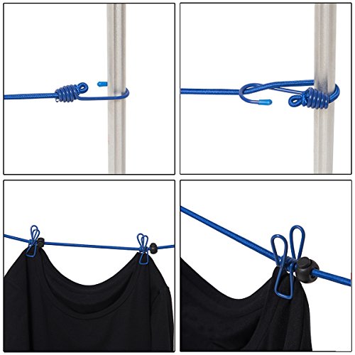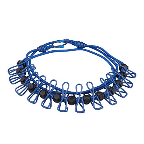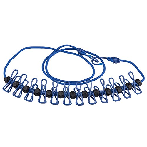Travel Clothesline , Portable Elastic Windproof Adjustable Clothes Line With 12pcs Clothespins for Outdoor and Indoor Use (Blue)