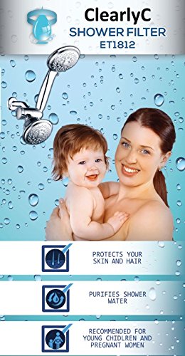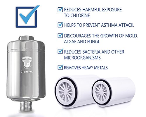 Shower Filter & Hard Water Softener - Two Replaceable Filter Cartridges (DOUBLE LIFETIME) - Removes Chlorine and Heavy Metals (Lead, Mercury, Nickel, Chromium) - By ClearlyC