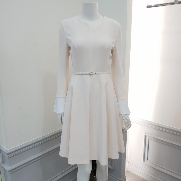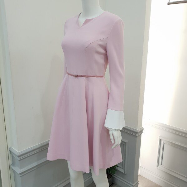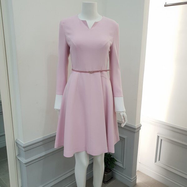 소매 플리츠주름배색이 여성스러움을 더해준벨트 플레어 원피스♡