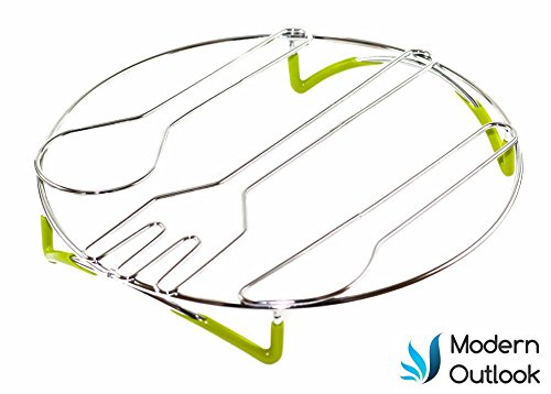 Modern Outlook Round Pot Holder, Metal Cooling Rack, Unique Utensil Design, Anti-Slip Coating, Chrome Finish, 8 inch Diameter (Green)
