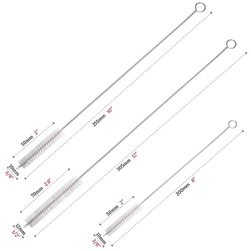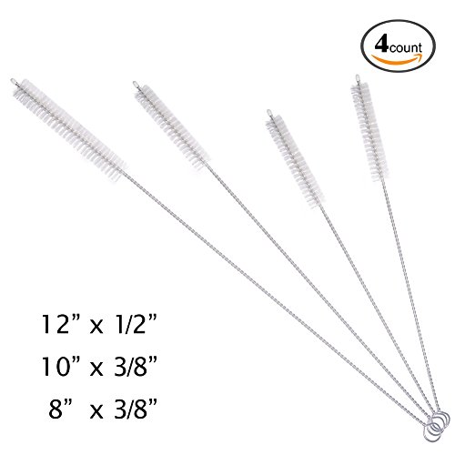 GFDesign Drinking Straw Cleaning Brushes Set Pipe Tube Bottle Cleaner Nylon Bristles Stainless Steel Handle 8" 10" 12" Extra Long 10mm 12mm Extra Wide Diameter - Set of 4