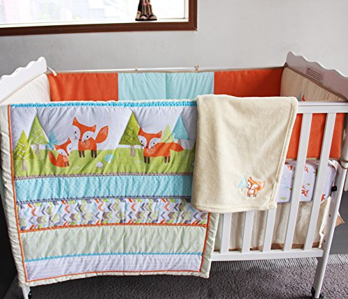 -. Title : NAUGHTYBOSS Baby Bedding Set Cotton 3D Embroidery Prairie Fox Quilt Bumper Bedskirt Fitted Blanket 8 Pieces Color Matching
