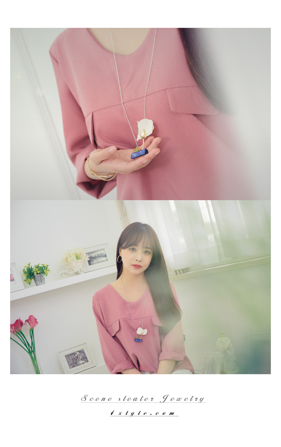 청초한 꽃송이 디자인으로 우아하고 여성스러운 네크리스.