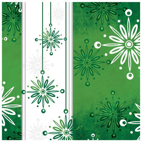 -. Title : Creative Converting 656404 18 Count Beverage Napkins, Falling Flakes, Green/White