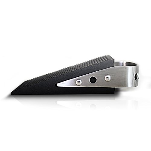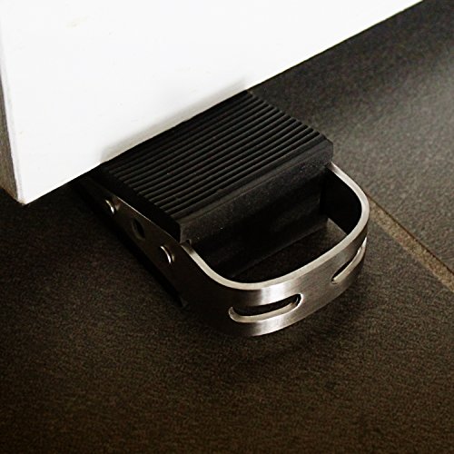 QUALITY. The quality of our door stop is unsurpassed. It is made of strong, brushed stainless steel, and scratch-proof black rubber. The rubber is substantive rather than rubber that will turn brittle or easily fall apart. Our door stopper is premium quality with exceptional materials.