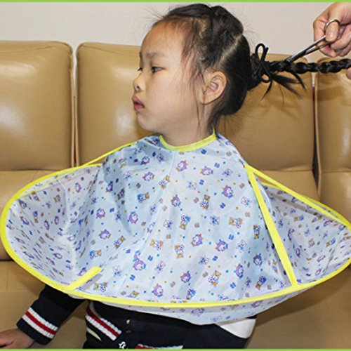 This cape is made of soft, lightweight, water-repellent and durable material, keeps your clothes dry and clean. Professional hair cutting hairdressing gown barbers capes. Anti-static, good material and fine workmanship. Easy to clean and dry quickly. Applicable to children,Can be adjusted to fit the necks The Velcro neck closure makes it suitable for any size. Suitable for Haircut Material: Polyester Suitable for height 100-140 cm Color: Multi-style can choose Quantity: 1Pcs Size: diameter 60 cm *60 cm Package Content: 1x haircut apron(without retail package) 0