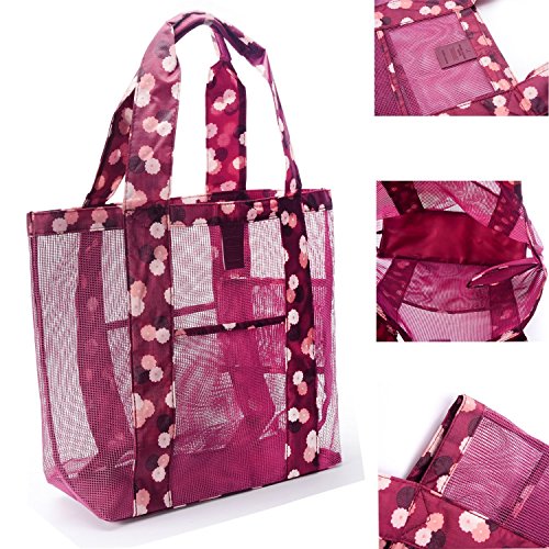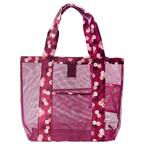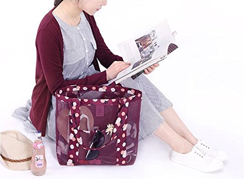 Beach Tote Mesh Bag Travel Luggage Bag Perfect for Towels Toys Shoulder Bag Casual Daypacks (Red)