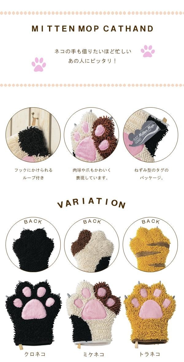 かわいいネコの手がモチーフのミトンモップ。