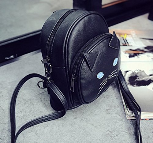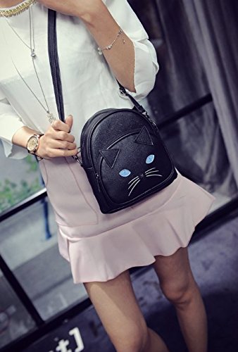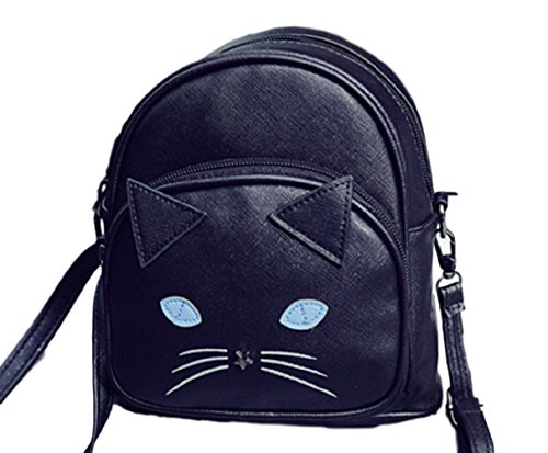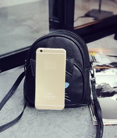 YUKICHI sac Cat face shoulder bag Harajuku Style 【 Black / White 】2way Small backpack Faux Leather (Black)