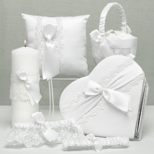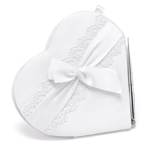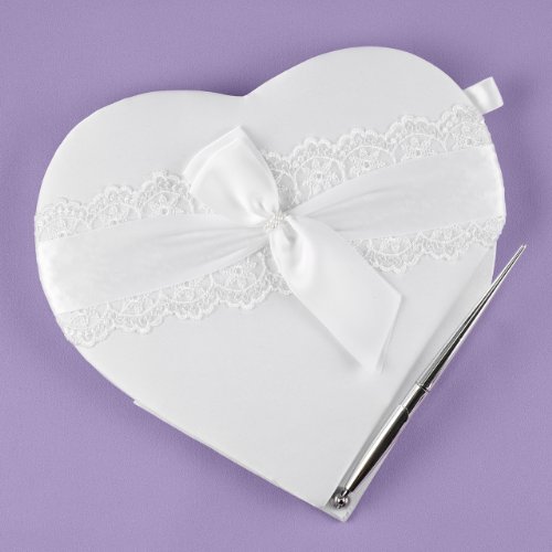 Hortense B. Hewitt Lace Allure Wedding Accessories, Heart Shaped Guest Book and Pen Set