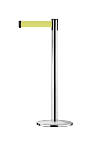 Tensabarrier 889U-1P-1P-MAX-NO-F5X-C - Polished Chrome Post, 2" Wide, 13' Length Florescent Yellow Belt , 38" Height, 2.5" Wide, 156" Length
