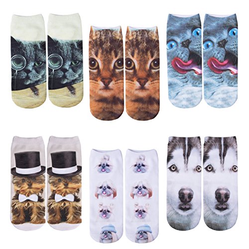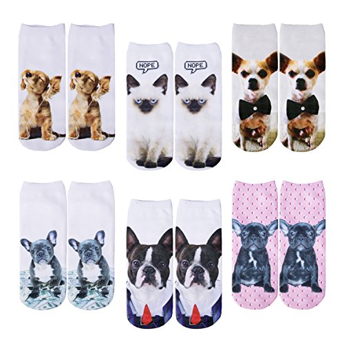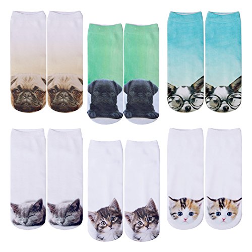 -. Title : 6 Pack Women Girls 3D Funny Crazy Cartoon Novelty No Show Animals Ankle Socks