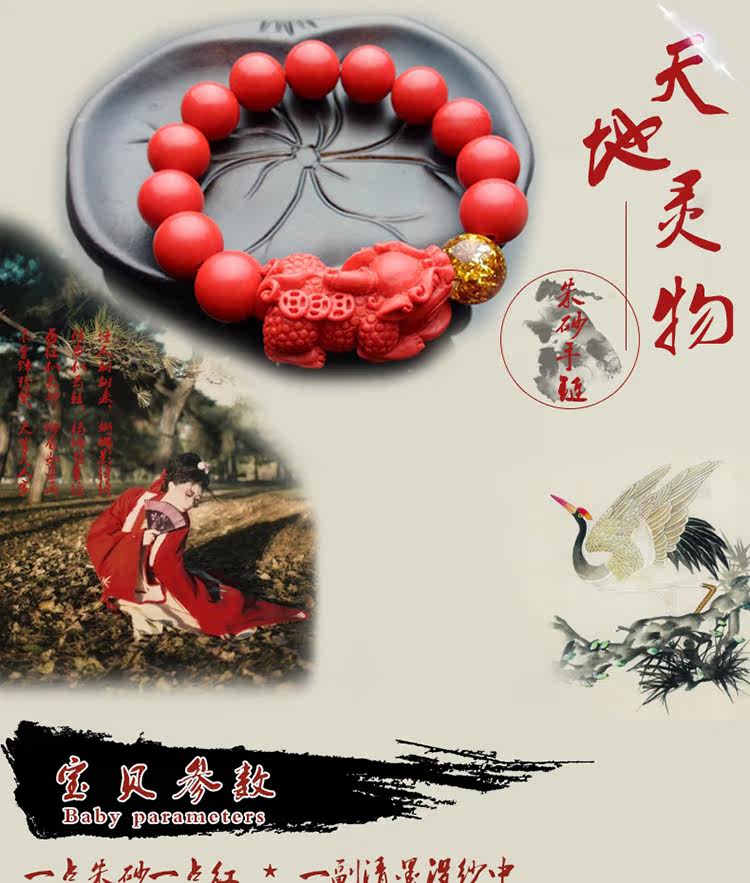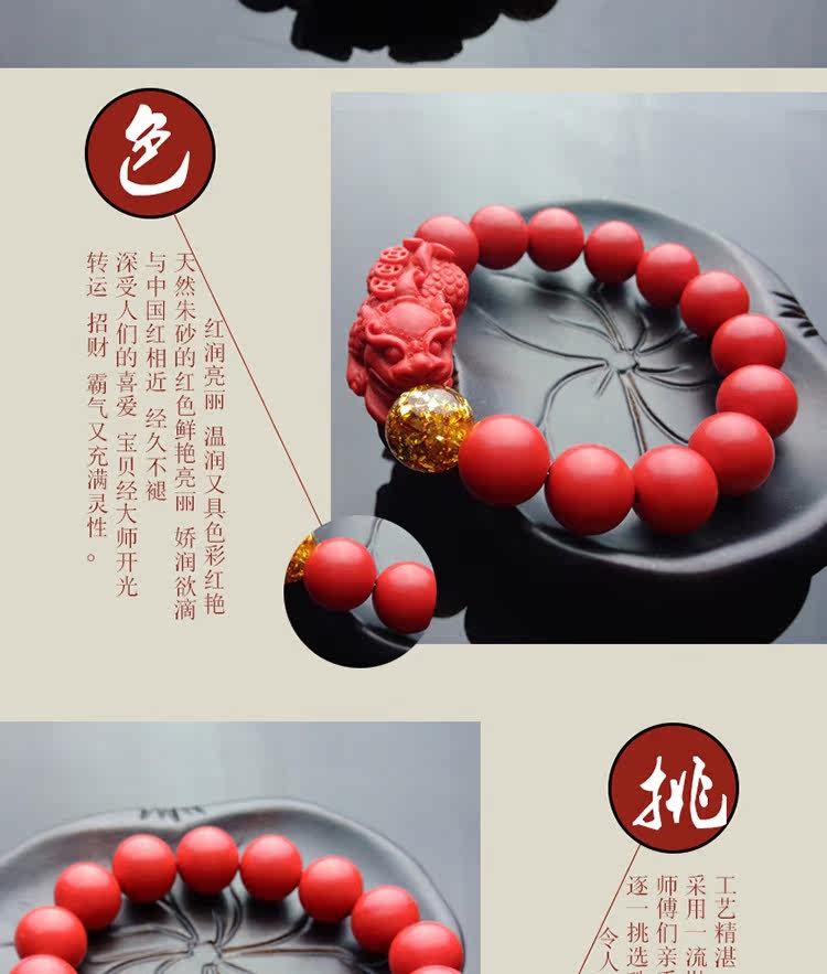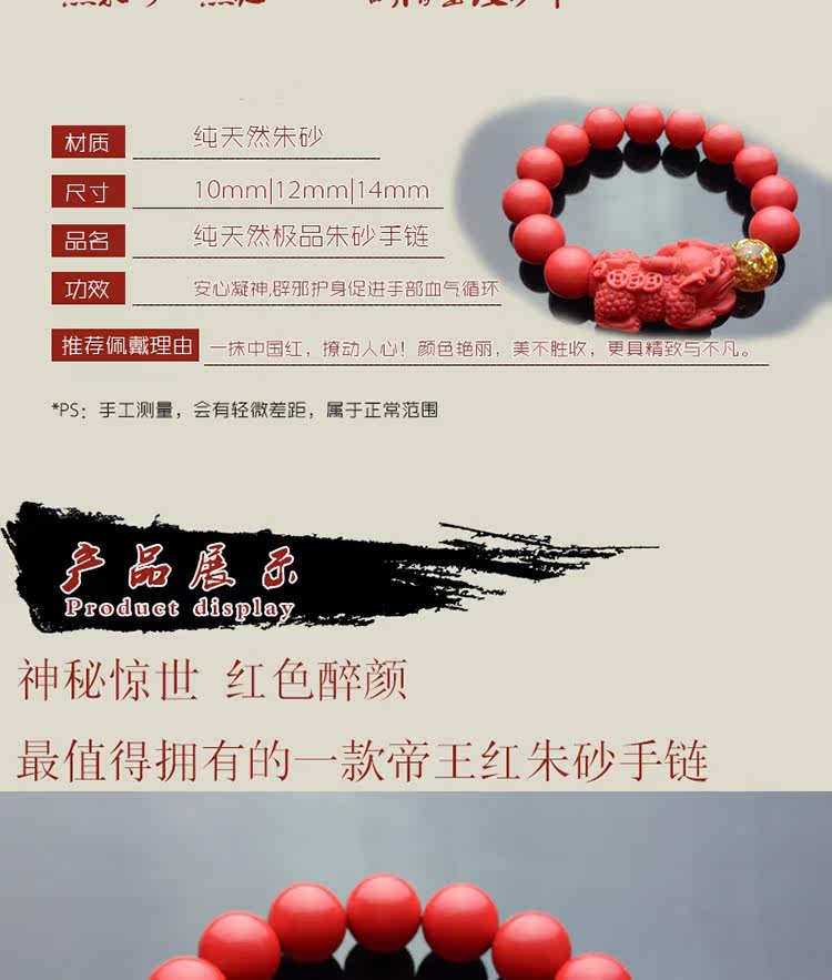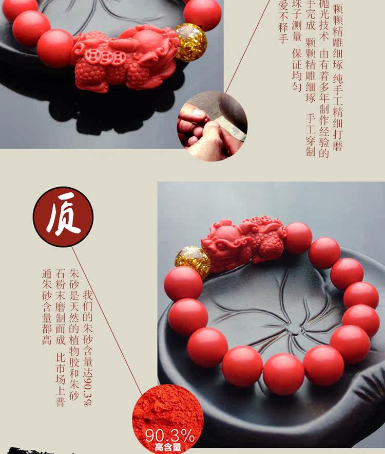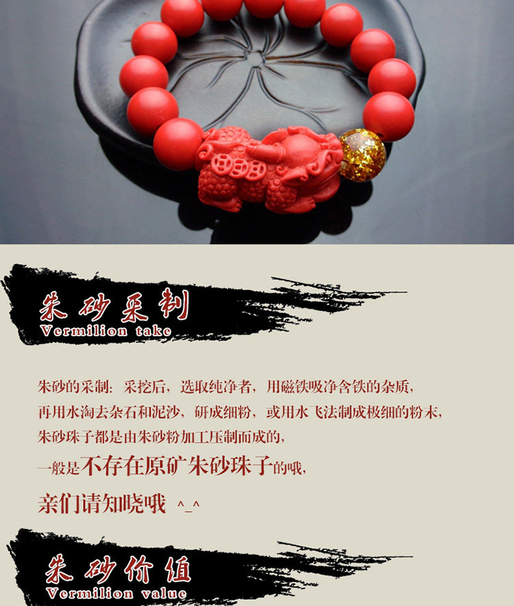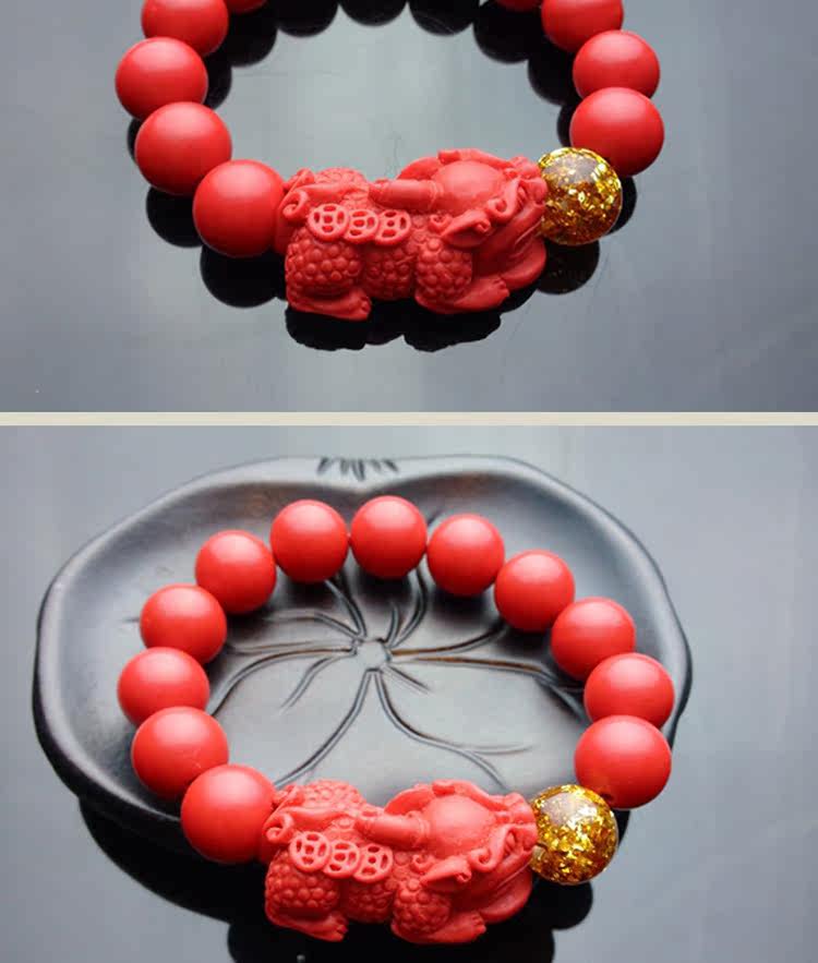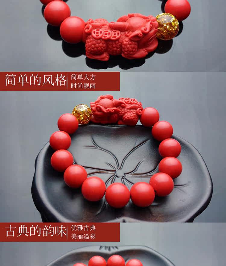 正品天然台湾朱砂貔貅单圈金箔手链男女款 招财辟邪转运礼品