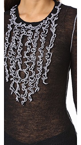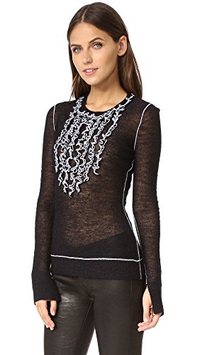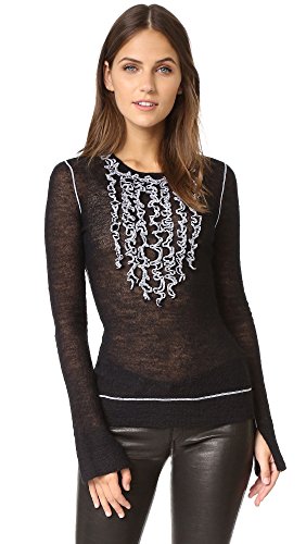 Serged ruffles add feminine flair to this lightweight BCBGMAXAZRIA sweater. Long sleeves with split cuffs. Semi-sheer.