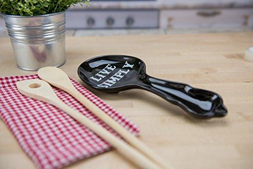 Studio : Boston Warehouse Publisher : Boston Warehouse Binding : Kitchen Product Description The Boston Warehouse live simply spoon rest adds a touch of whimsy to your kitchen. The spoon shaped spoon rest provides a large surface area to contain messy spoons and utensils keeping cooktops and countertops clean. Each spoon rest is individually hand painted, making each piece individual and unique. Made of durable ceramic, the spoon rest is dishwasher safe making clean up a breeze. Look for more creative ideas for your home and kitchen from Boston Warehouse. 0