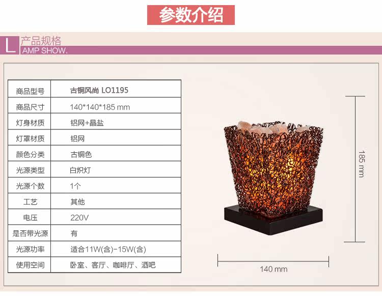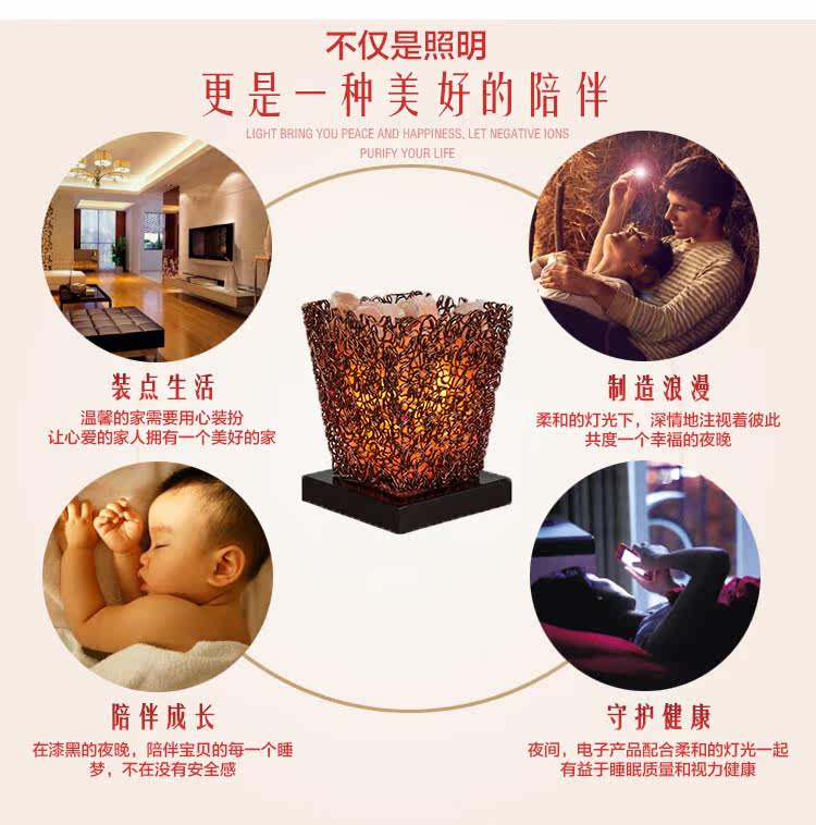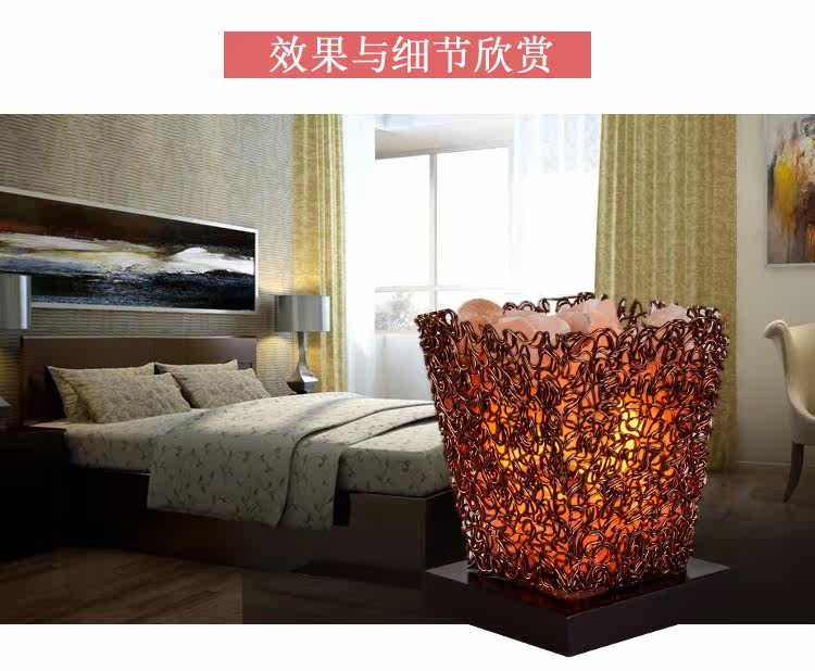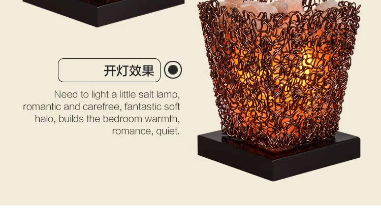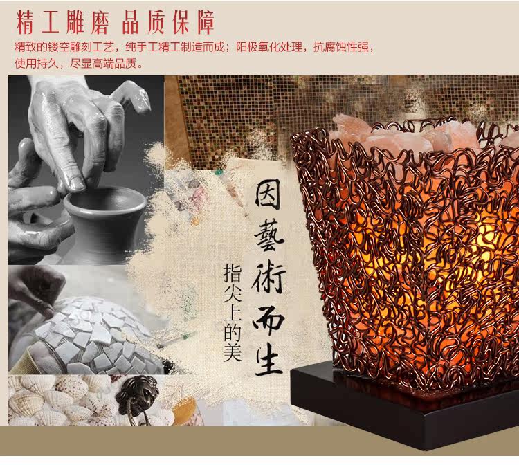 古铜网水晶盐灯简约现代创意台灯客厅卧室书房办公室家居摆设装饰