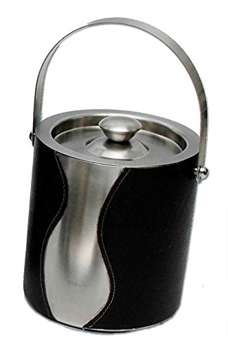 -. Title : DMA Elements Home Stainless-Steel Double-Walled Ice Bucket with Black Faux Leather Accent