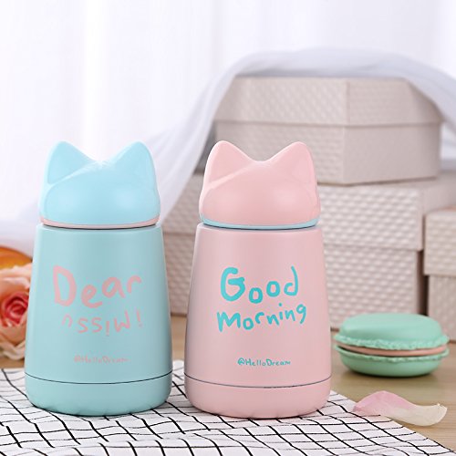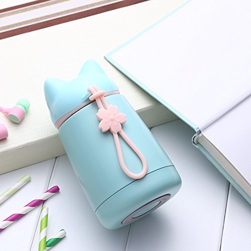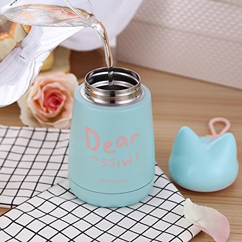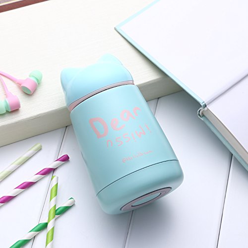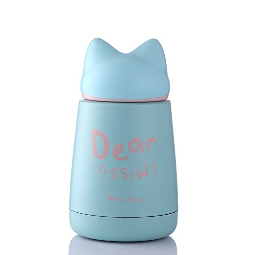 'Hello Dream'' Cute Cartoon Fox, 300ML/10.5oz Insulated Tumbler Cup, Child Kids Adult Hot/Cold Drinking Water Bottle, Thermos Travel Coffee Mug Stainless Steel Vacuum Flask (Cyan)