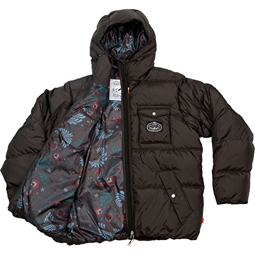 Studio : Poler Young Mens Child Code Publisher : Poler Young Mens Child Code Binding : Apparel Product Description This goose down filled jacket is made of poly ripstop nylon with a DWR finish/800 fill insulation/signature printed poly taffeta lining on the solid colorways. 0