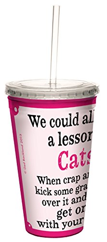 Tree-Free Greetings 16-Ounce Double-Walled Cool Cup with Reusable Straw, Aunty Acid Lesson from Cats (CC98388)