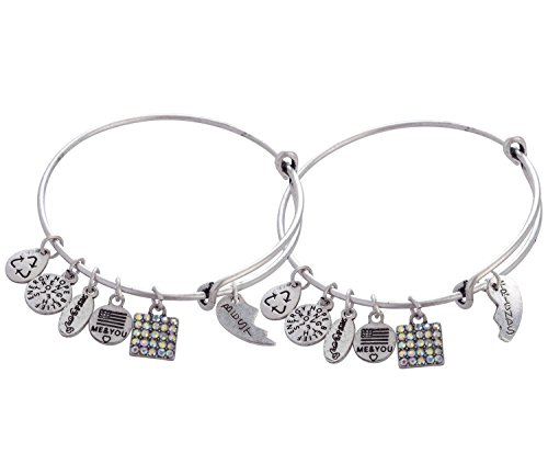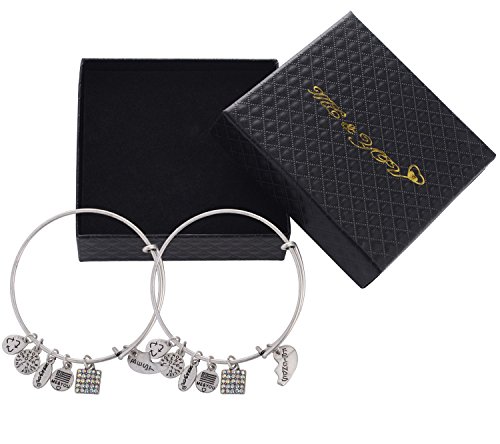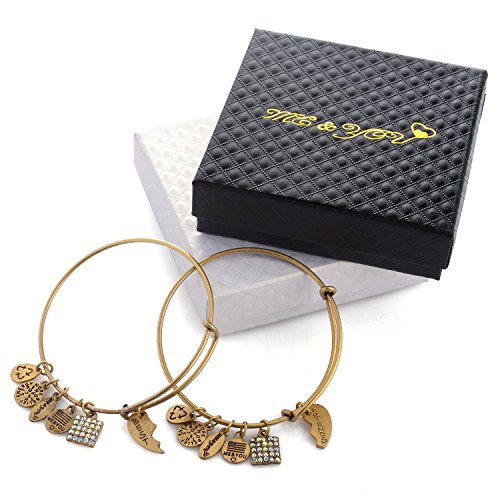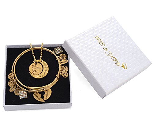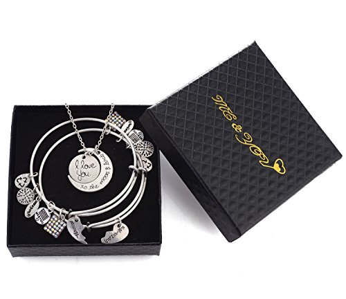 -. Feature : 1 Bonus!!! Bonus!!! Bonus!!! Buy nowBest Friends and get very special bonus and very nice gift for you , vintage necklace "I Love you to the Moon and back "see them in the gift box This gift Chain & bracelet together - is a perfect set Handmade Crafted from high quality silver or gold plated base materials, the "Me And You" charm bracelet collection features an expandable bangle bracelet with five charms, including the "Me And You" charm, and a beautiful pendant unique to that design / 2 Every charm bracelet in the collection symbolizes a different message and meaning, focusing on the power of positive energy and releasing - Pendant depicting the eternal cycle of life eternal - the power of positive energy and featuring a unique symbol on charm and Releases good energy of love, hope, blessing, believe, and strength - charm pendant - birthstone energies of love, hope, blessing, and strength, succesfaith grace, and forgiveness. / 3 The trendy and fashionable charm bracelets are made especially for you and Was chosen to be one of the bracelets expandable from 2.67 inches to 3.25 inches in diameter to provide a perfect fit for most teenagers and adults. We hope that you enjoy wearing the bracelet just as I enjoyed creating it for you They are shipped in a Large beautiful gift box 3.75"x3.75"x1.2 that keeps the bracelet safe and is ready to present as a thoughtful gift. Came in color Black and white / 4 Perfect for engagement gifts, birthdays, anniversaries, Christmas, Mother's Day, Birthday, Valentine's Day, Father's Day marital Day. holidays You can give it to anyone Grandma, Mom. Wife, daughter, sister, aunt, friend, or any special event, a "Me And You" charm bracelet tells that special someone that they are loved and cherished. / 5 the - Feather plume Bangle is Delicate and beautiful jeweler combines modern classic design in Retro view Finish vintage , With the charm oxidized and finishing antique view design The bracelet is a beautiful and touching gift With a message of love and giving Suitable for all event