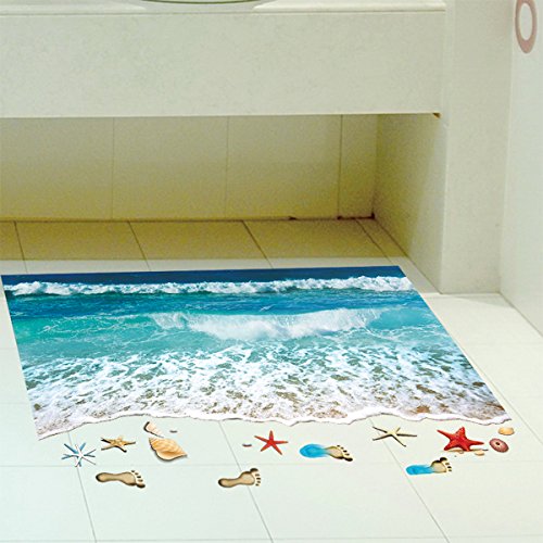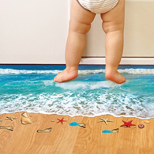 iwallsticker Removable Creative 3D Beach Wall Stickers Floor Window Wall Decals Wall Stickers Murals for Bathroom Kids Room Bedroom Front Floor Living Room Decorations