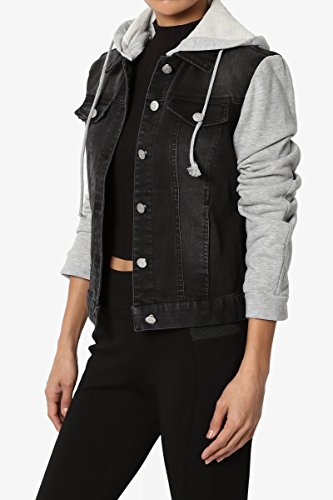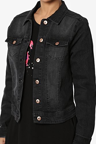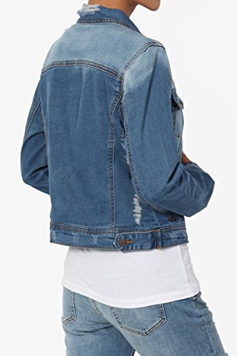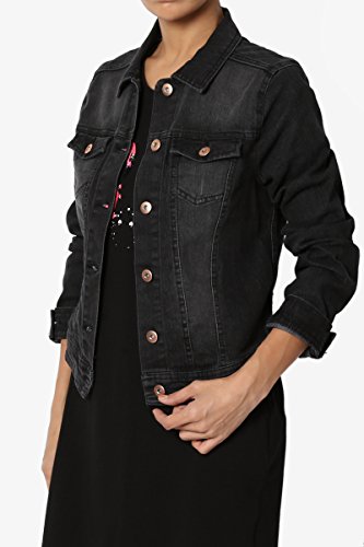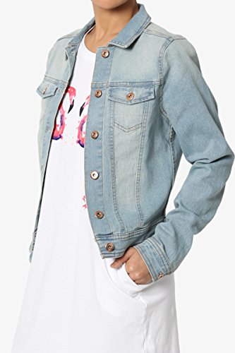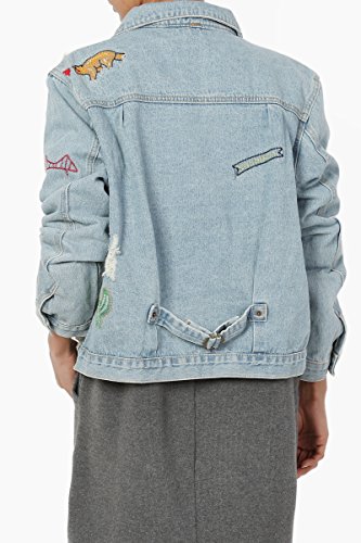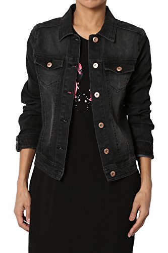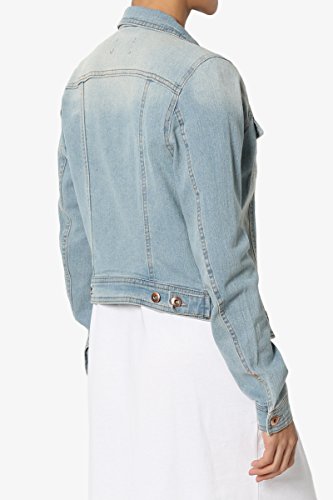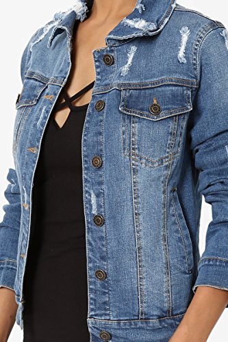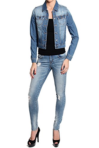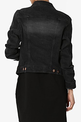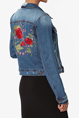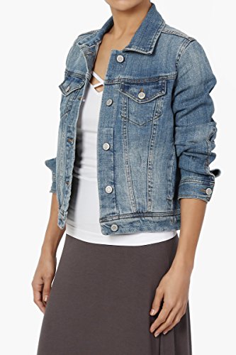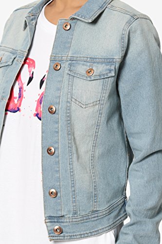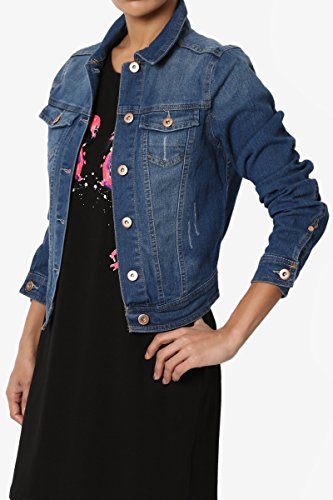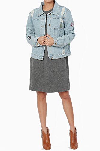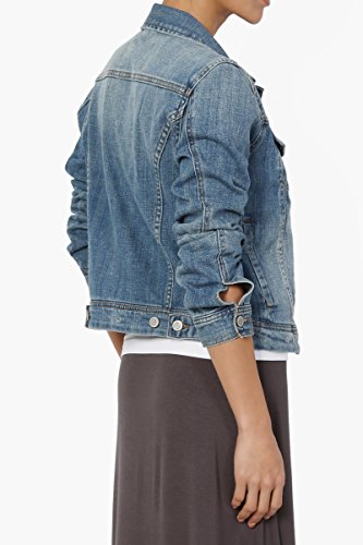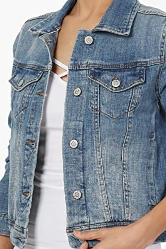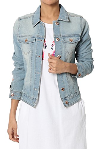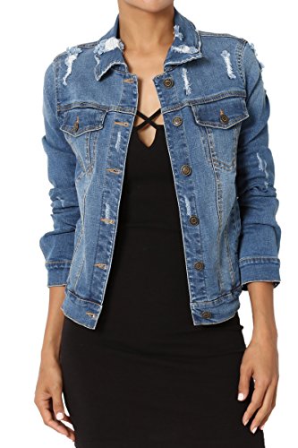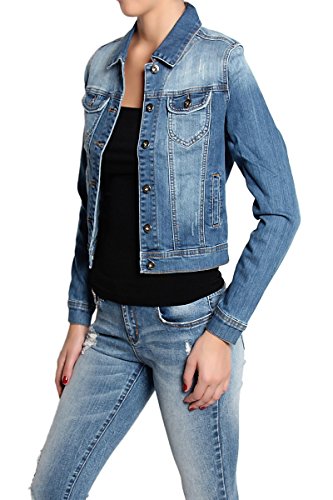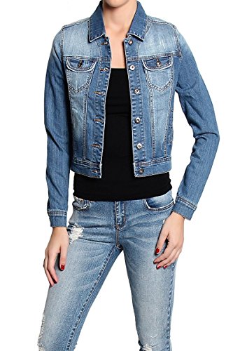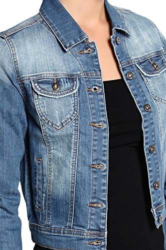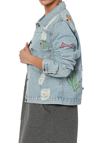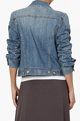 | TheMogan Women's Washed 3/4 Sleeve Cropped Denim Jacket |
