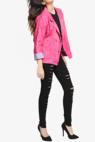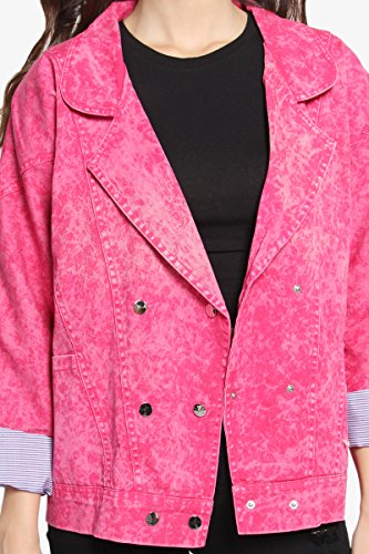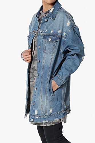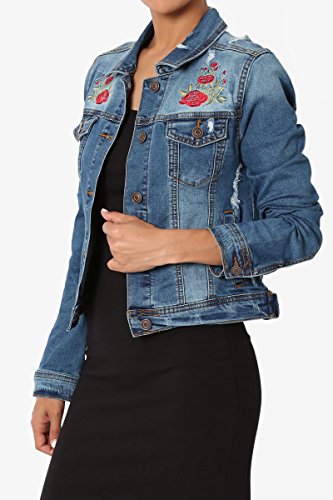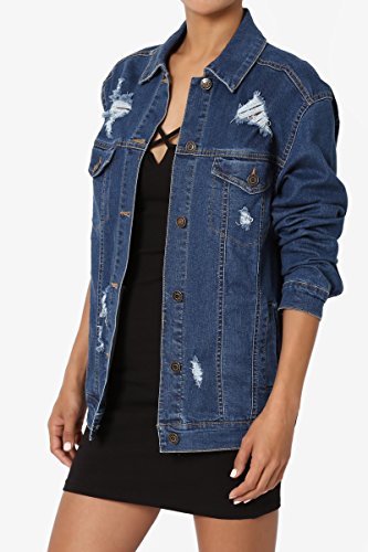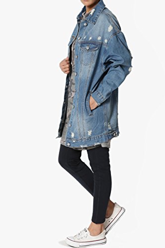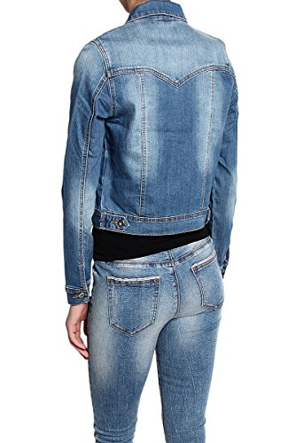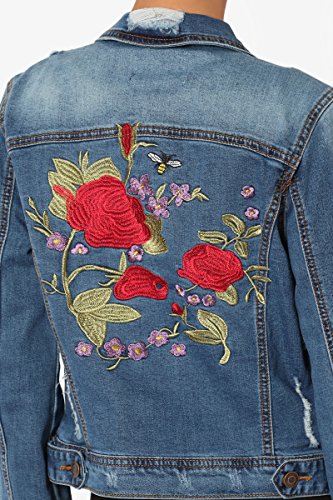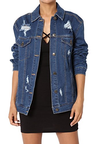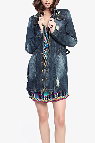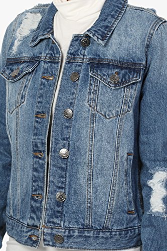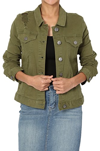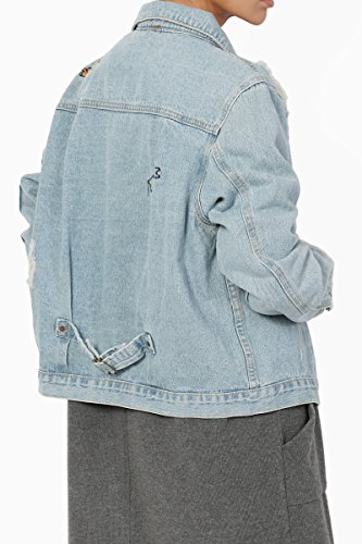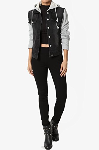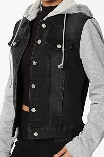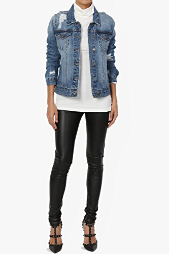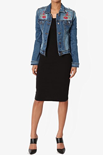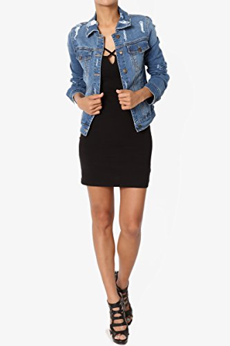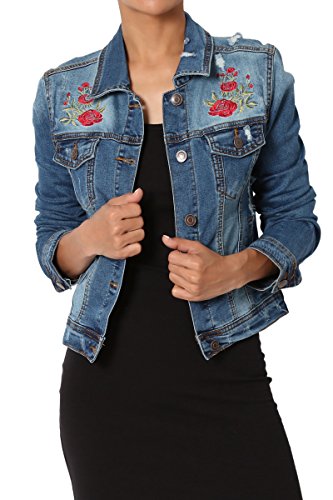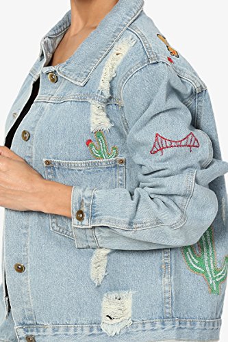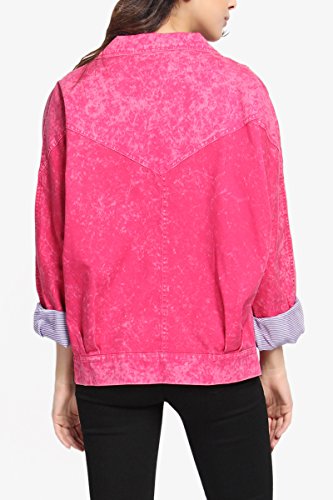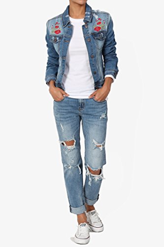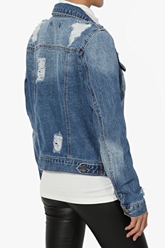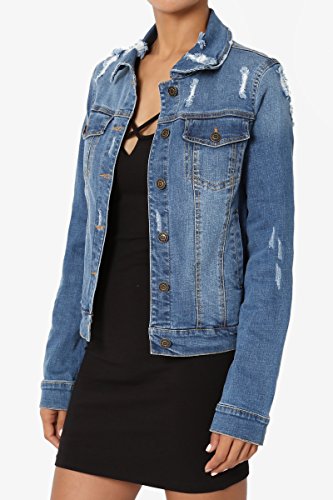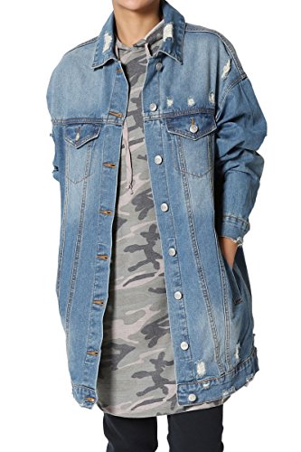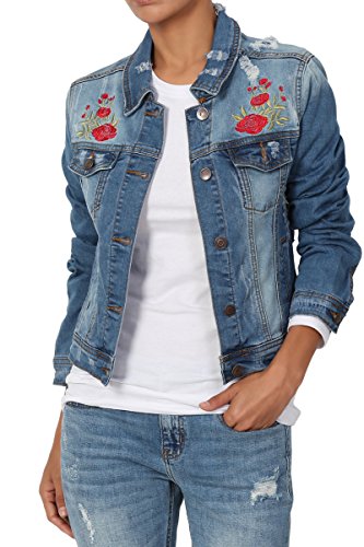 | TheMogan Women's Washed 3/4 Sleeve Cropped Denim Jacket |