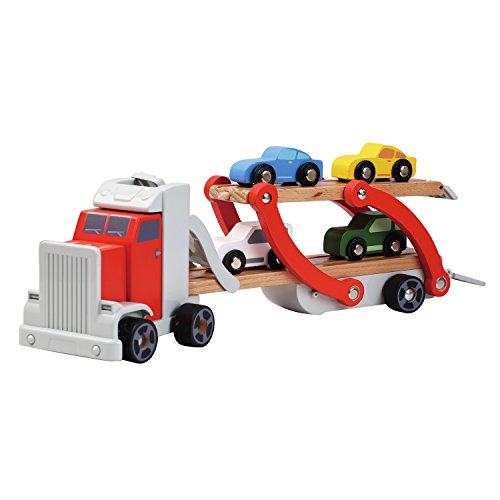 You can change configuration to load, carry, then unload the cars. Mix of wood and plastic for durability. Hand-Eye Coordination, Brain Development, Problem Solving & Shape Recognition skills are engaged through play . Gross Motor Skills are enhanced with stacking blocks and other easily-manipulated toys. Bright colors, imaginative fun.