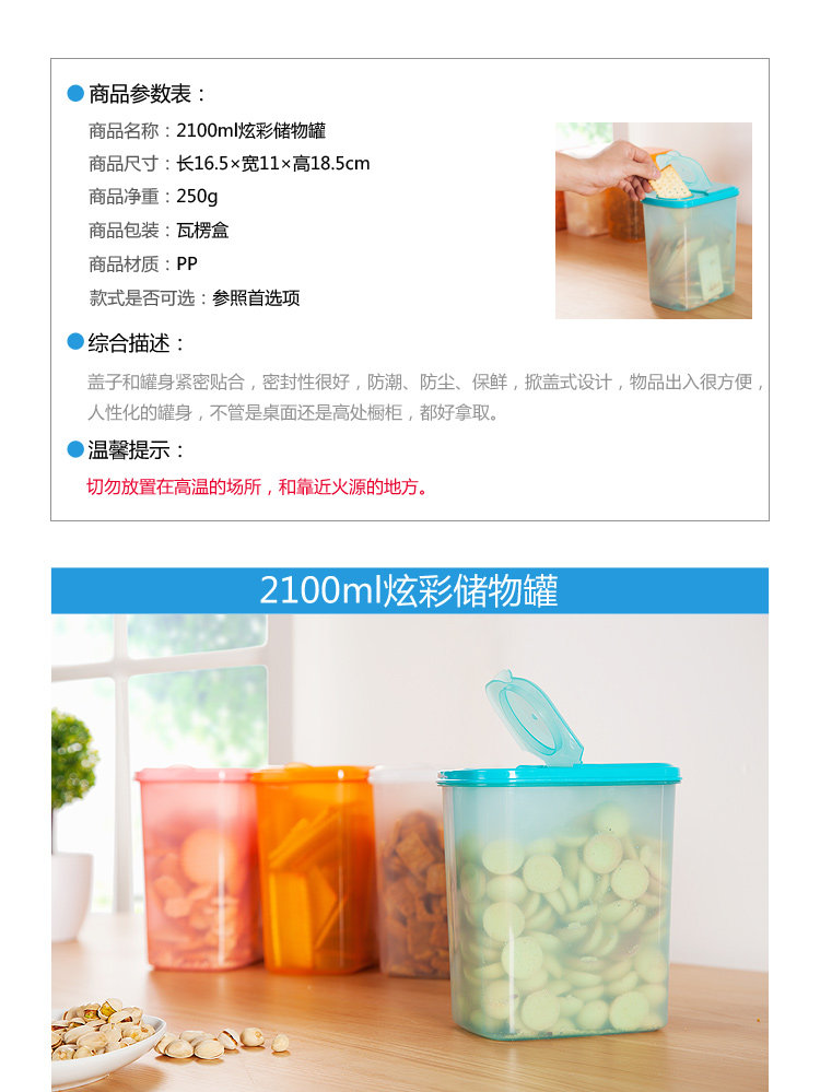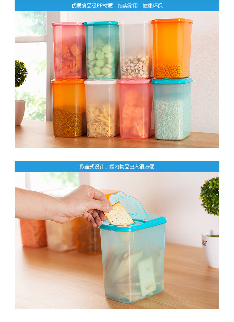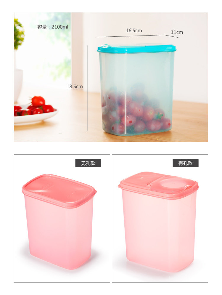 食品级PP掀盖式密封罐 干货面粉杂粮储物罐 收纳罐 有孔款